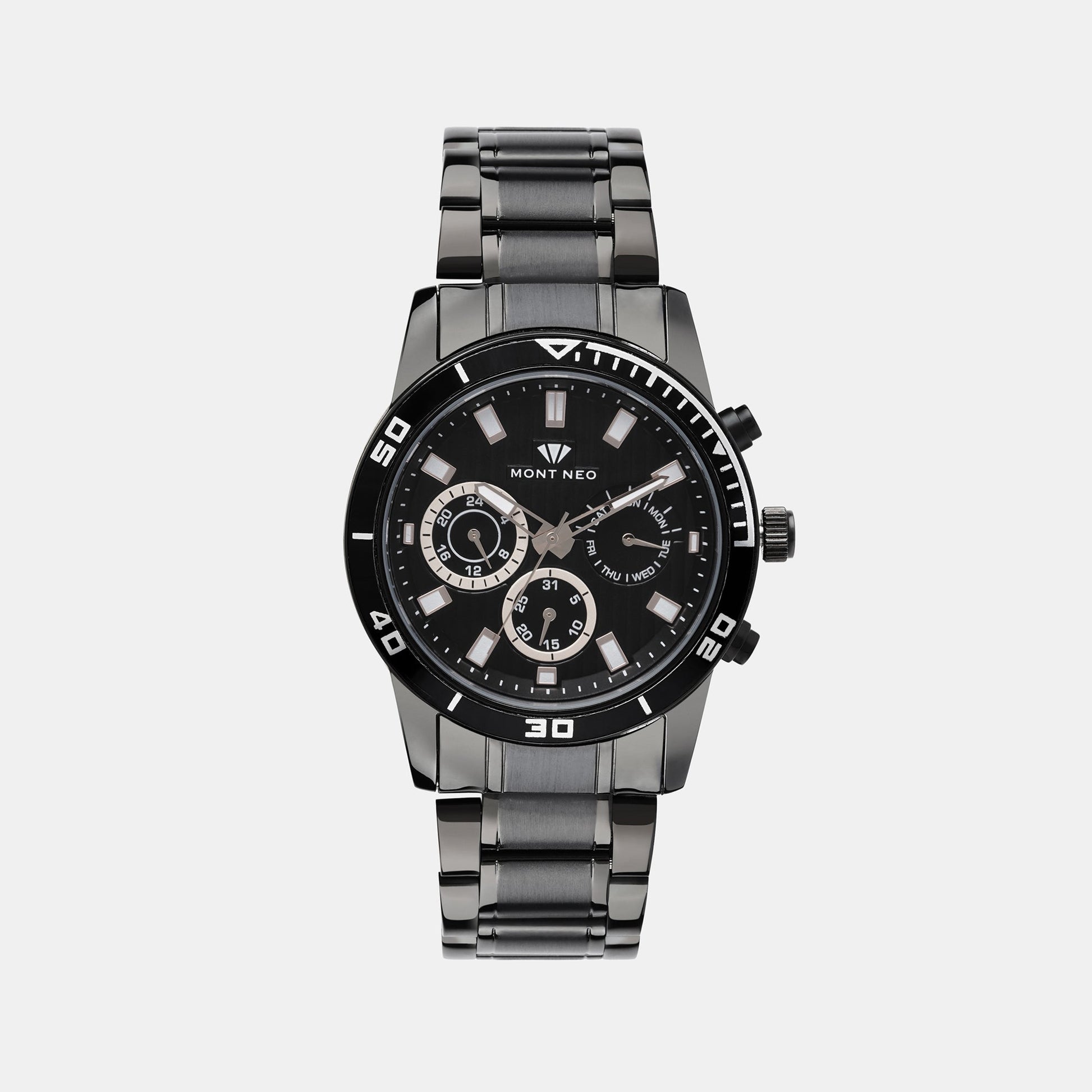 Men's Refined Black Chronograph Stainless Steel Watch 1036C-M4404